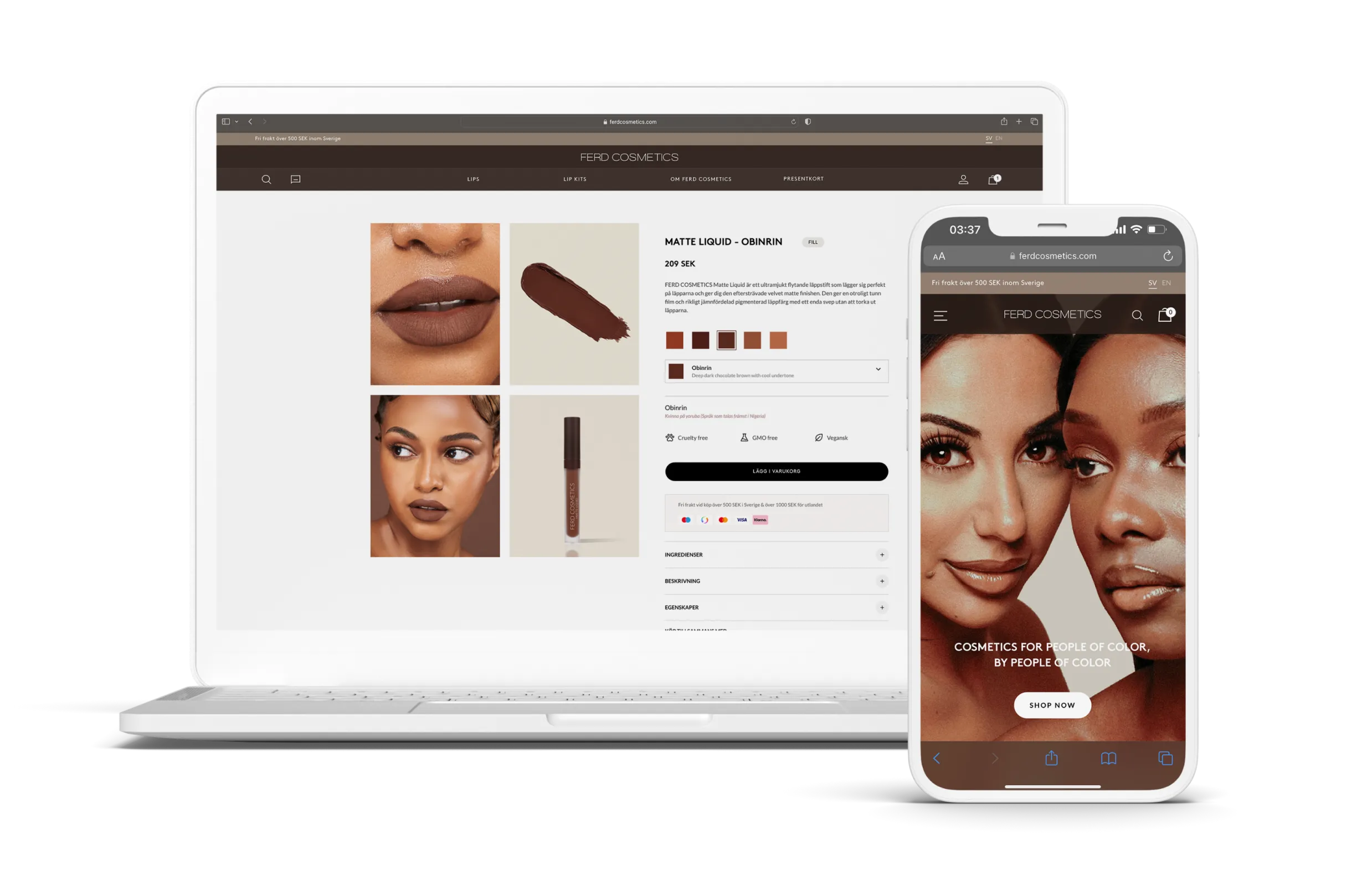 Vi föreslog en "headless" e-handelswebbplatslösning genom att kombinera Webflows visuella designfunktioner med Shopifys robusta e-handelsfunktioner. Detta möjliggjorde att Ferd Cosmetics kunde skapa en visuellt imponerande frontend med hjälp av Webflow, samtidigt som de utnyttjade Shopifys backend-funktionalitet för smidig hantering av lager, orderhantering och säkra betalningslösningar.